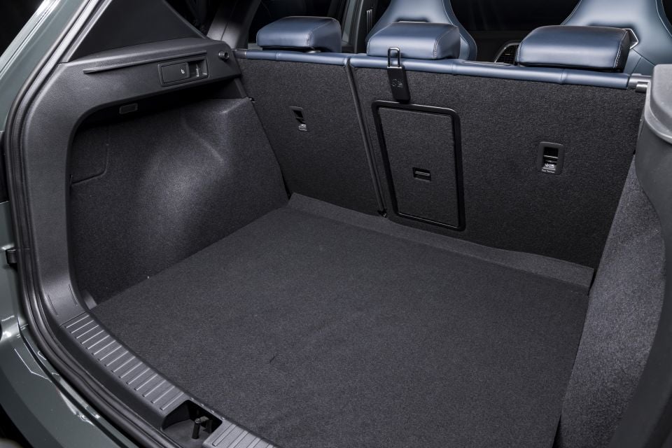 There isn’t a whole lot going on in the cargo area, other than a few cargo hooks and additional cubbies for loose items. If you need more space, the rear seats split 60:40 and fold almost flat to extend the cargo floor, while there’s a central passthrough to fit longer items while keeping the rear outboard seats in use.
